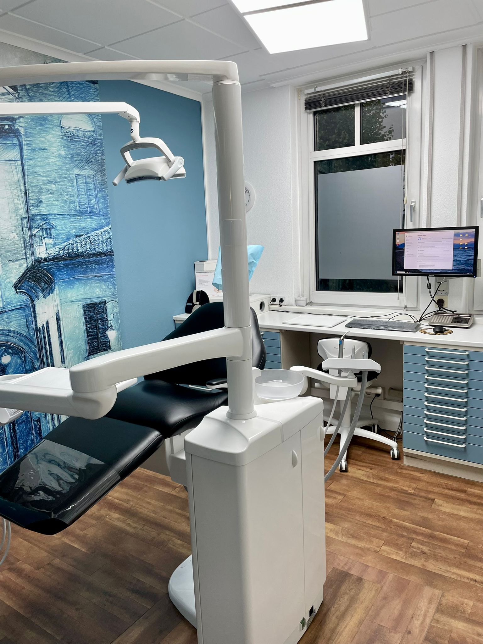Das vom Künstler Andreas Berger geschaffene mediterrane Ambiente ist bestens dafür geeignet, die typischen Zahnarztängste vergessen zu lassen. Für den Rest sorgen wir durch einfühlsame und schmerzarme Behandlung nach dem neusten Stand der Zahnmedizin.